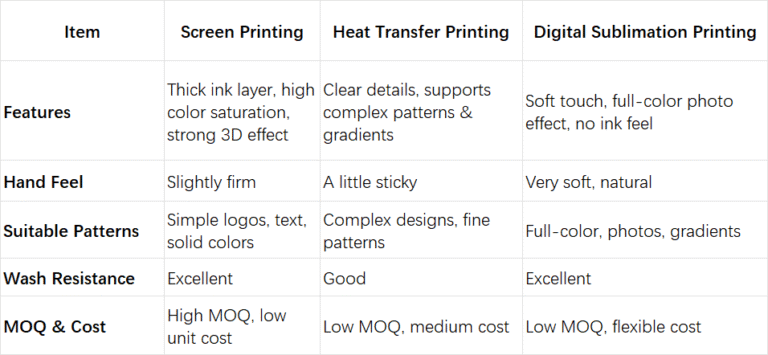 – Best for: Large-quantity orders, solid-color logos, text, and simple graphic designs.